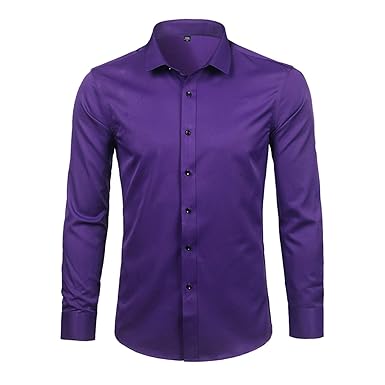 Mens Dress Shirt Solid Color Long Sleeve White Shirt Men